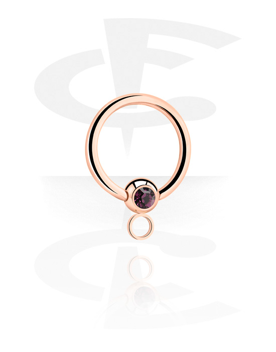 Kulering (kirurgisk stål, rosegull, skinnende finish) med krystallstein og bøyle for feste