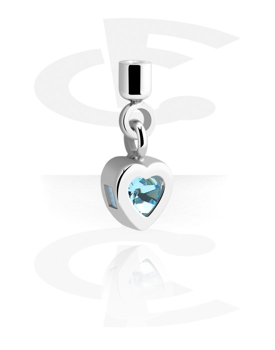 Feste for 1,2 mm gjengede pinner (kirurgisk stål, sølv, skinnende finish) med hjertecharm og krystallstein