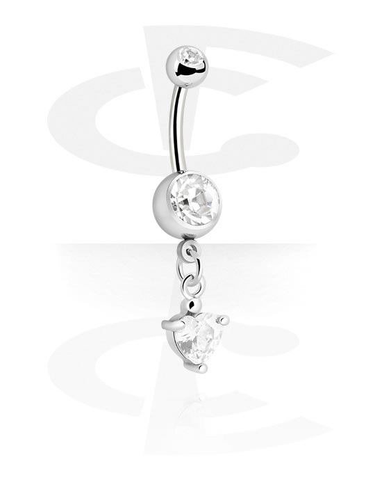 Navlering (kirurgisk stål, sølv, skinnende finish) med hjertecharm og krystallsteiner