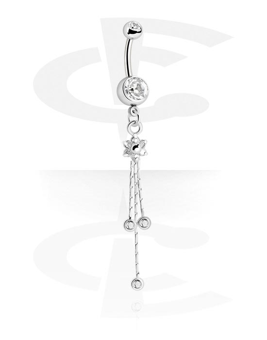 Navlering (kirurgisk stål, sølv, skinnende finish) med blomstercharm og krystallsteiner
