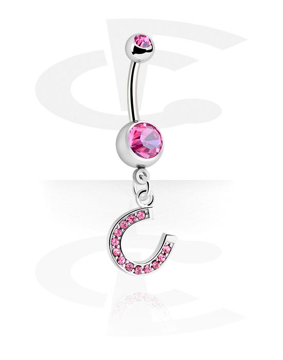 Navlering (kirurgisk stål, sølv, skinnende finish) med hesteskocharm og krystallsteiner