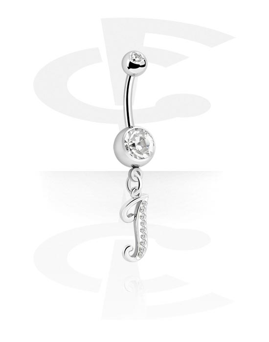 Navlering (kirurgisk stål, sølv, skinnende finish) med charm med bokstaven "I" og krystallsteiner