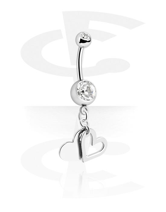 Navlering (kirurgisk stål, sølv, skinnende finish) med hjertecharm og krystallsteiner