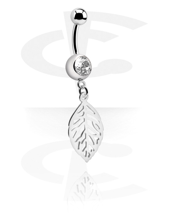Navlering (kirurgisk stål, sølv, skinnende finish) med bladanheng og krystallstein