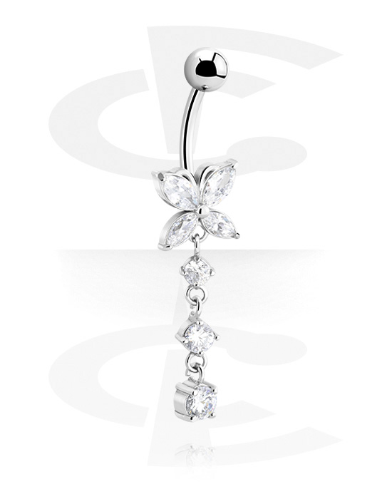Navlering (kirurgisk stål, sølv, skinnende finish) med sommerfugldesign og krystallsteiner