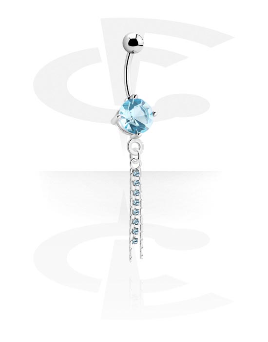 Navlering (kirurgisk stål, sølv, skinnende finish) med charm og krystallsteiner