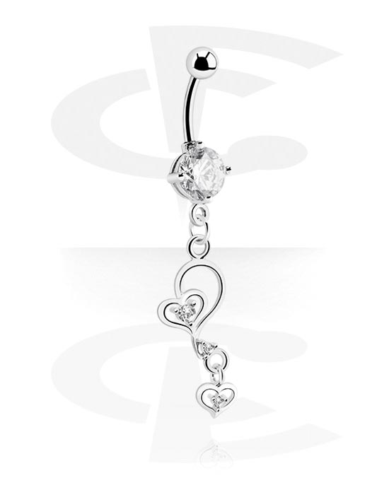 Navlering (kirurgisk stål, sølv, skinnende finish) med charm og krystallsteiner