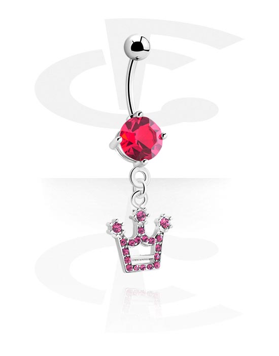 Navlering (kirurgisk stål, sølv, skinnende finish) med kronecharm og krystallsteiner