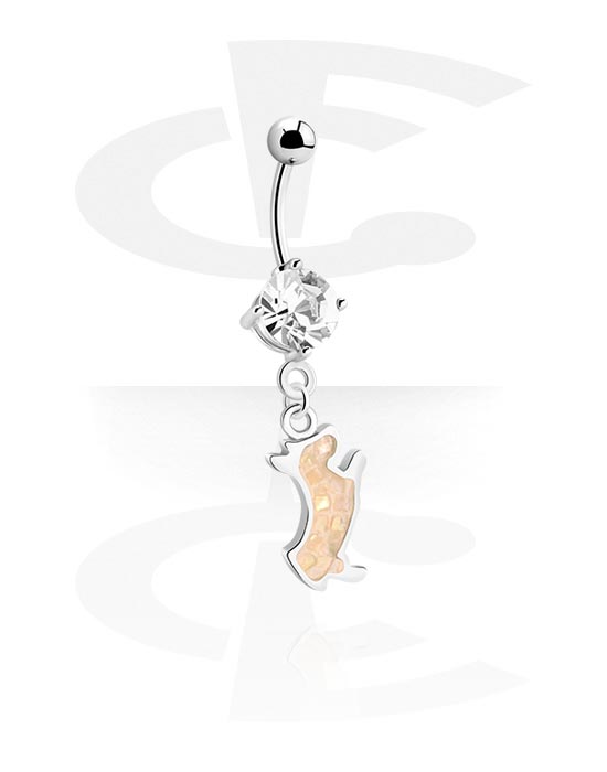Navlering (kirurgisk stål, sølv, skinnende finish) med hundecharm og krystallsteiner