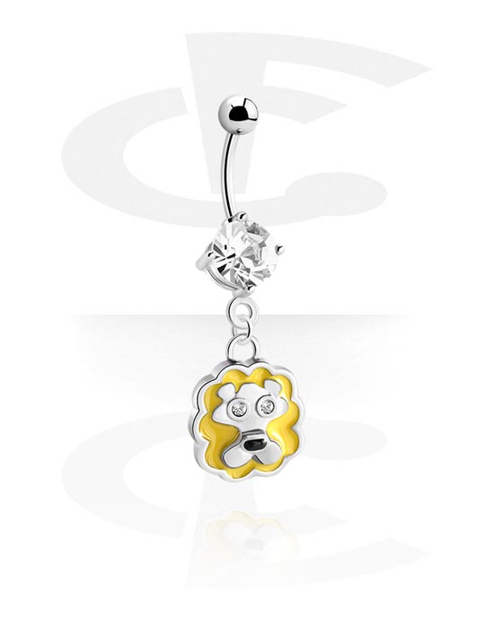 Navlering (kirurgisk stål, sølv, skinnende finish) med løvecharm og krystallsteiner