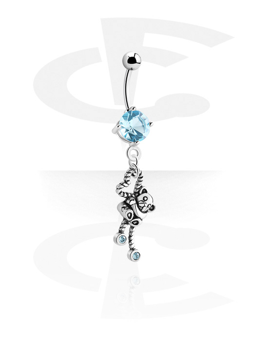 Navlering (kirurgisk stål, sølv, skinnende finish) med teddybjørncharm og krystallsteiner