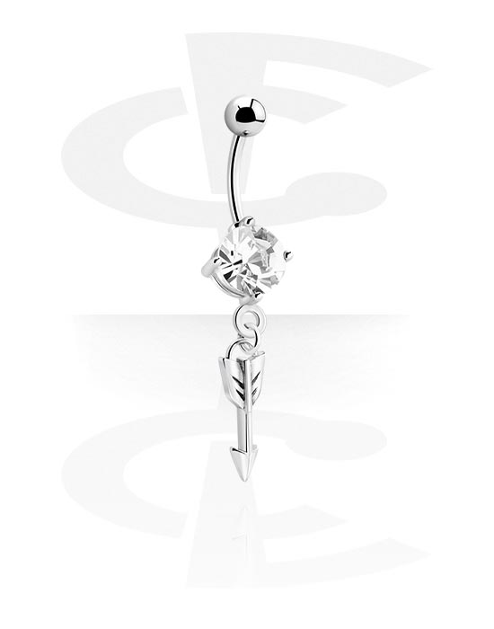 Navlering (kirurgisk stål, sølv, skinnende finish) med pilcharm og krystallstein
