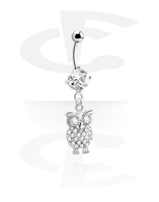 Navlering (kirurgisk stål, sølv, skinnende finish) med Uglecharm og krystallsteiner