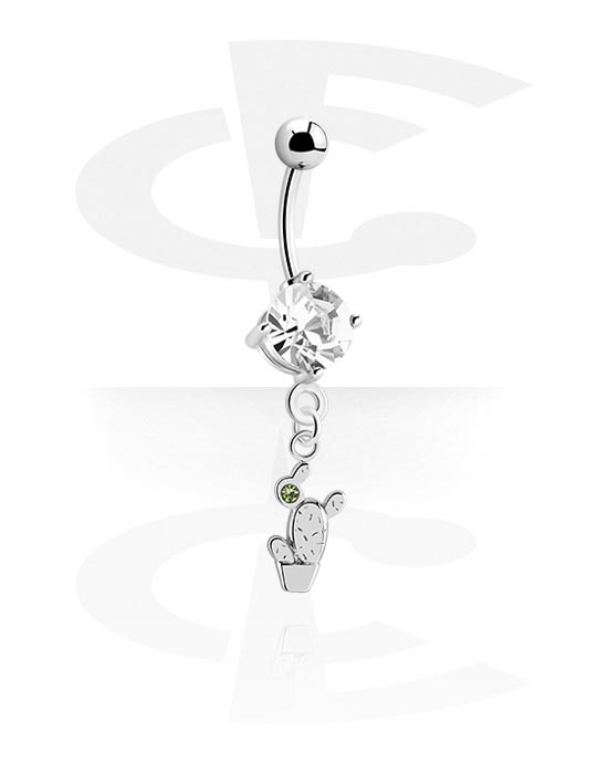 Navlering (kirurgisk stål, sølv, skinnende finish) med kaktusdesign og krystallsteiner