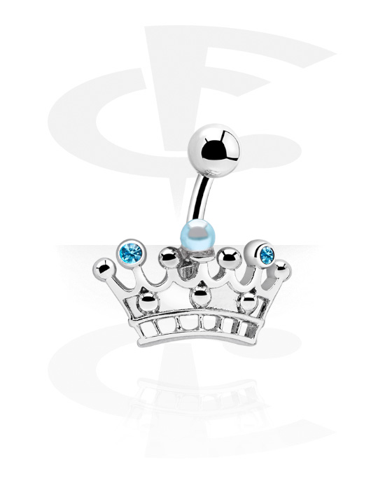 Navlering (kirurgisk stål, sølv, skinnende finish) med kronefeste og krystallsteiner