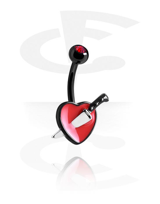 Navlering (kirurgisk stål, svart, skinnende finish) med hjertedesign og krystallstein