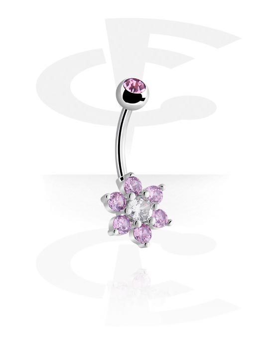 Navlering (kirurgisk stål, sølv, skinnende finish) med blomsterfeste og krystallsteiner