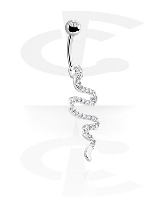 Navlering (kirurgisk stål, sølv, skinnende finish) med slangedesign og krystallsteiner