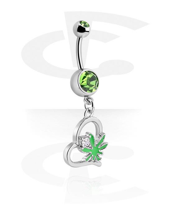 Navlering (kirurgisk stål, sølv, skinnende finish) med Marihuanablad og krystallsteiner
