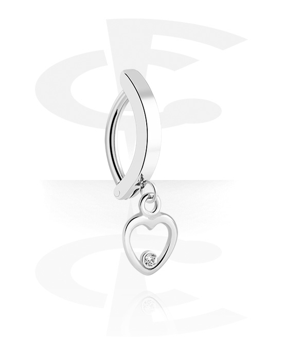 Navle-clicker (kirurgisk stål, sølv, skinnende finish) med hjertecharm og krystallsteiner