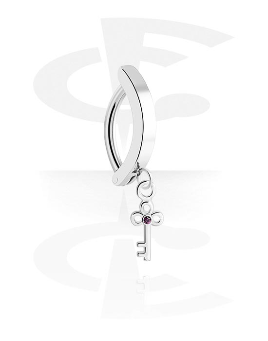 Navle-clicker (kirurgisk stål, sølv, skinnende finish) med nøkkelcharm og krystallsteiner