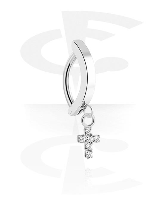 Navle-clicker (kirurgisk stål, sølv, skinnende finish) med korscharm og krystallsteiner