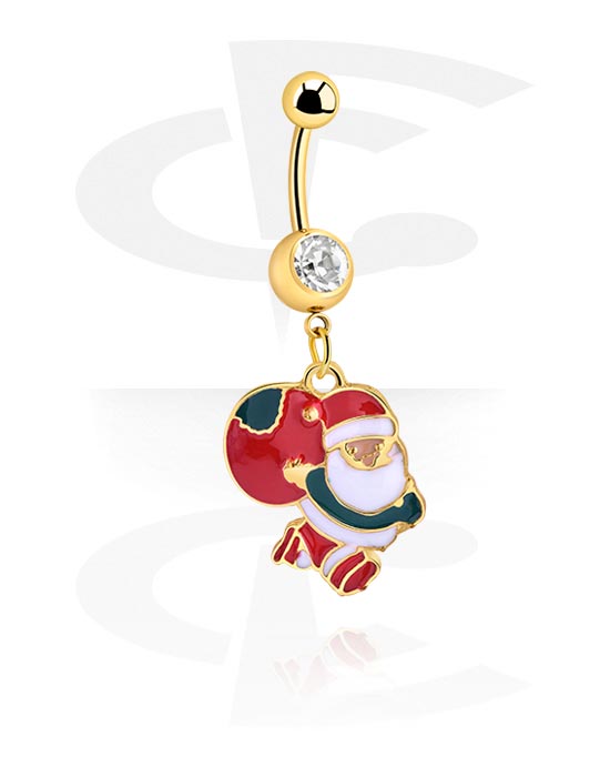 Navlering (kirurgisk stål, gull, skinnende finish) med Nissedesign og krystallstein