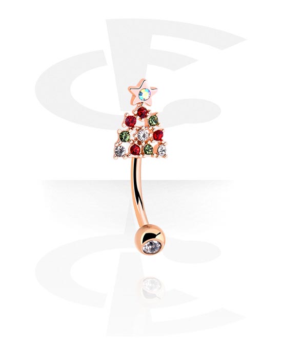 Navlering (kirurgisk stål, gull, skinnende finish) med Juletredesign og krystallsteiner