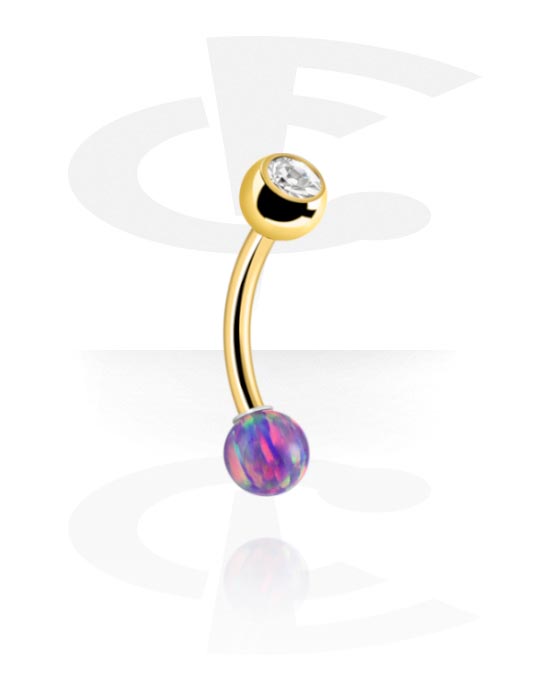 Navlering (kirurgisk stål, gull, skinnende finish) med Utsmykket kule og syntetisk opal