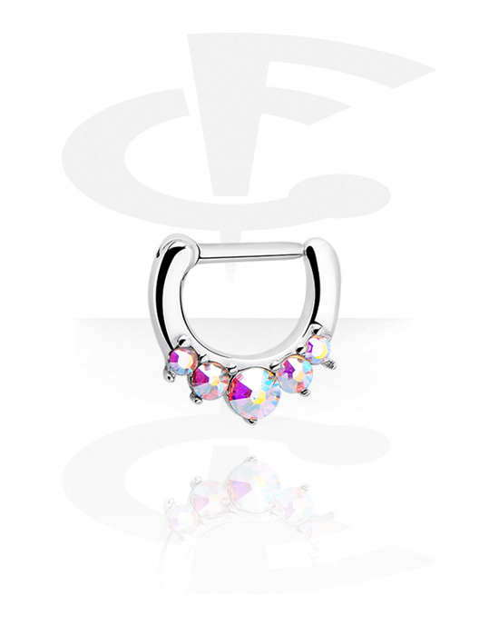 Septum-clicker (kirurgisk stål, sølv, skinnende finish) med krystallsteiner