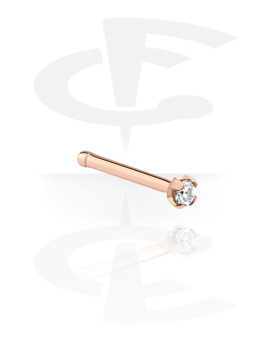Rett nesedobb (kirurgisk stål, rosegull, skinnende finish) med krystallstein