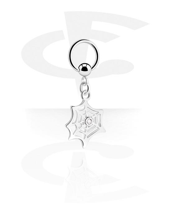 Kulering (kirurgisk stål, sølv, skinnende finish) med spindelvevsjarm og krystallstein
