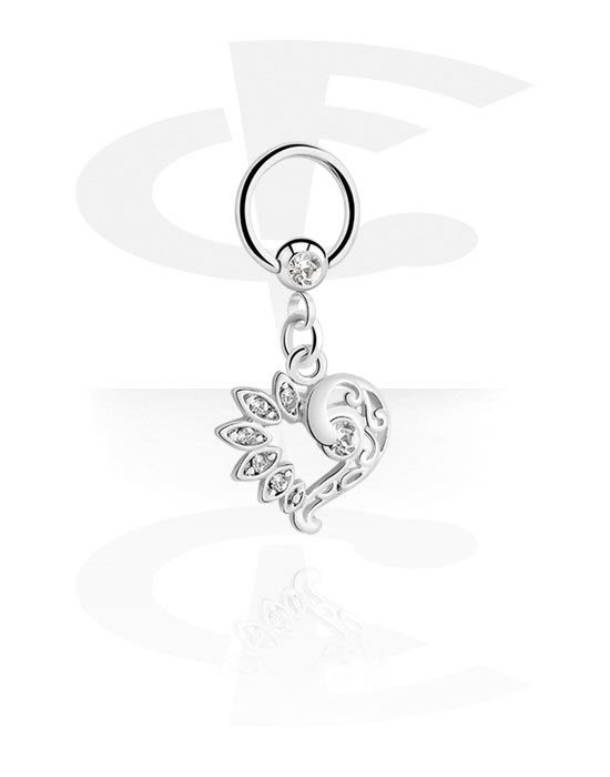 Kulering (kirurgisk stål, sølv, skinnende finish) med hjertecharm og krystallsteiner