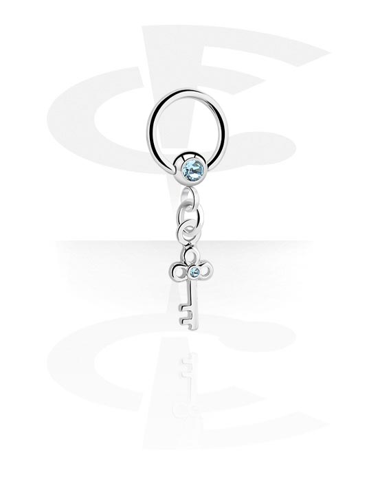 Kulering (kirurgisk stål, sølv, skinnende finish) med krystallstein og nøkkelcharm
