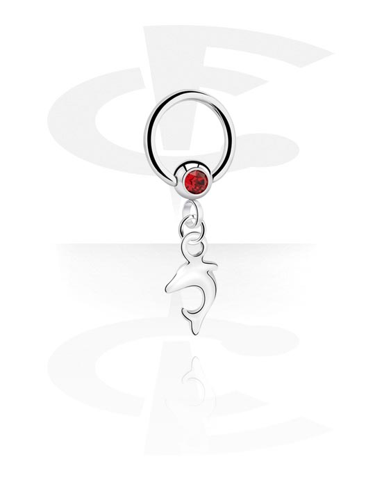 Kulering (kirurgisk stål, sølv, skinnende finish) med krystallstein og delfincharm