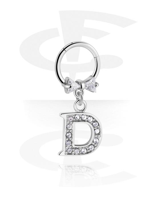 Piercing-clicker (kirurgisk stål, sølv, skinnende finish) med bue og charm med bokstaven "D"