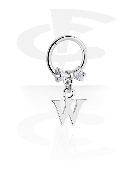 Piercing-clicker (kirurgisk stål, sølv, skinnende finish) med bue og charm med bokstaven "W"