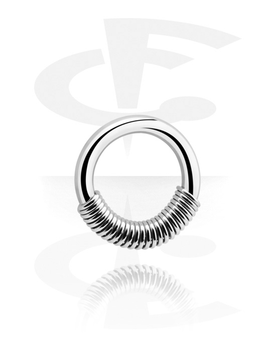 Werkt net zoals een ball closure ring, maar heeft een geribbeld opzetstukje in springveer-look in plaats van een balletje. Cool alternatief en veelzijdig inzetbaar!
