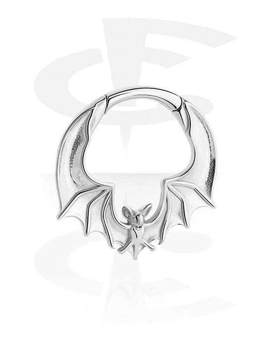Ciężarek do ucha (stal chirurgiczna, srebro, błyszczące wykończenie) z wzorem nietoperza