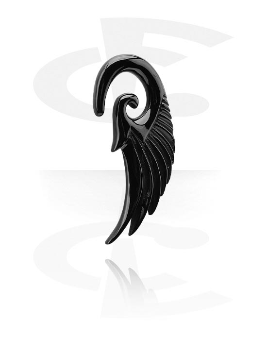 Ciężarek do ucha (stal chirurgiczna, czarny, błyszczące wykończenie) z wzorem skrzydła