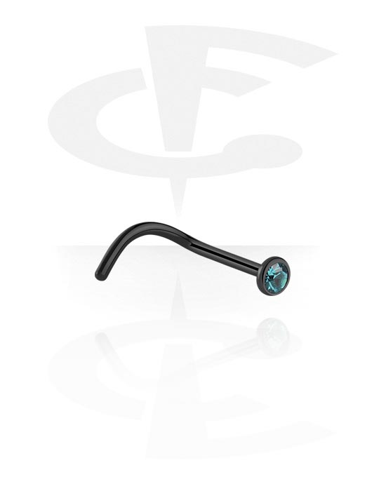Haczyk do nosa (stal chirurgiczna, czarny, błyszczące wykończenie) z z kryształem