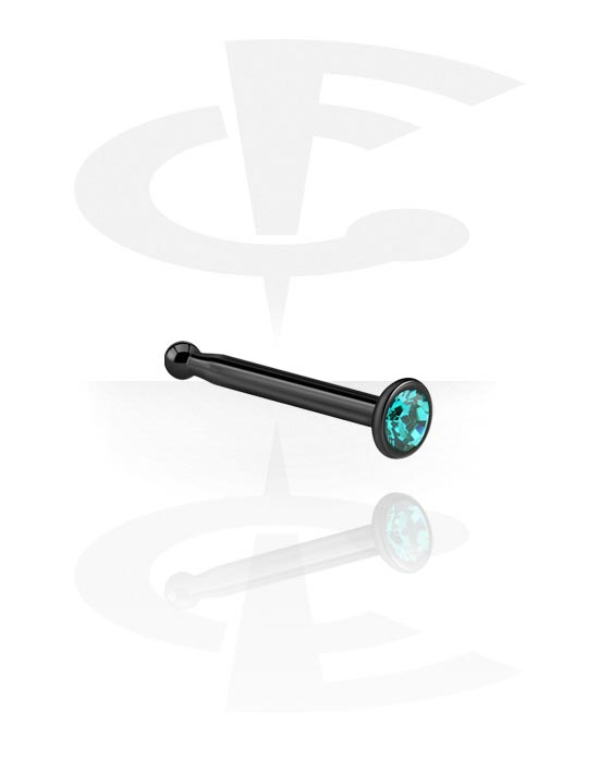 Prosty sztyft do nosa (stal chirurgiczna, czarny, błyszczące wykończenie) z z kryształem