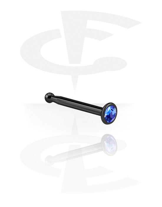 Prosty sztyft do nosa (stal chirurgiczna, czarny, błyszczące wykończenie) z z kryształem