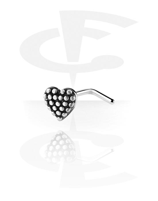 Haczyk do nosa (stal chirurgiczna, srebro, błyszczące wykończenie) z wzorem serca