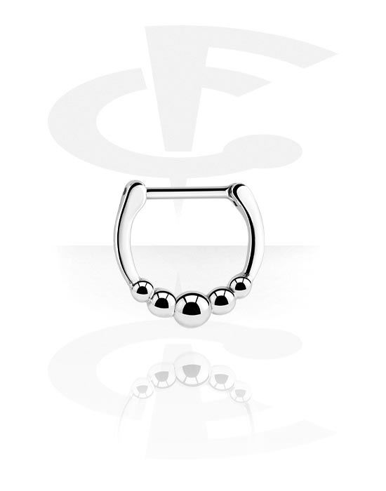 Clicker do septum (stal chirurgiczna, srebro, błyszczące wykończenie) z kulkami