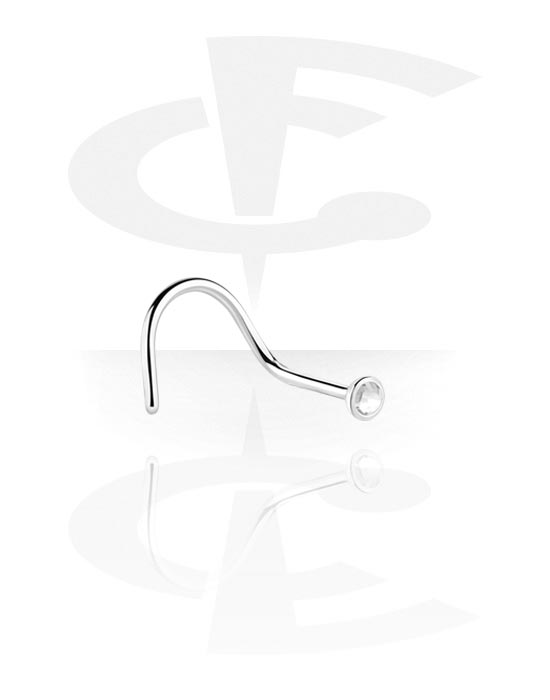 Zakrzywiony sztyft do nosa (stal chirurgiczna, srebro, błyszczące wykończenie) z z kryształem