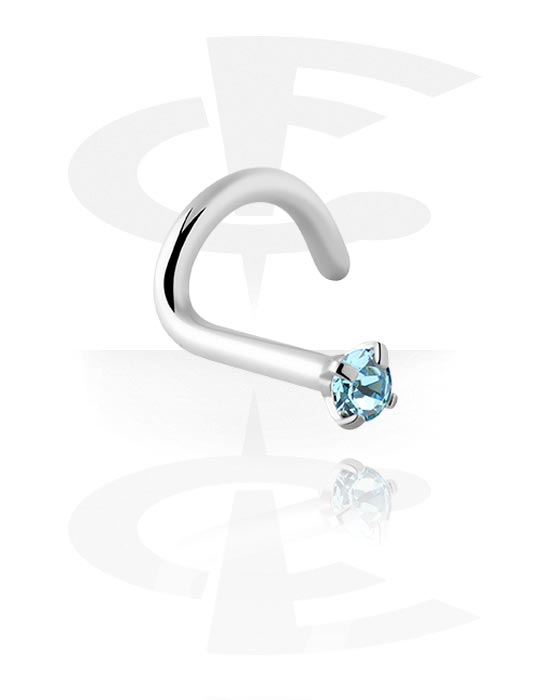 Zakrzywiony sztyft do nosa (stal chirurgiczna, srebro, błyszczące wykończenie) z z kryształem