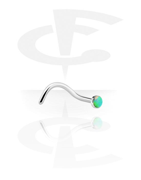 Zakrzywiony sztyft do nosa (stal chirurgiczna, srebro, błyszczące wykończenie) z syntetycznym opalem