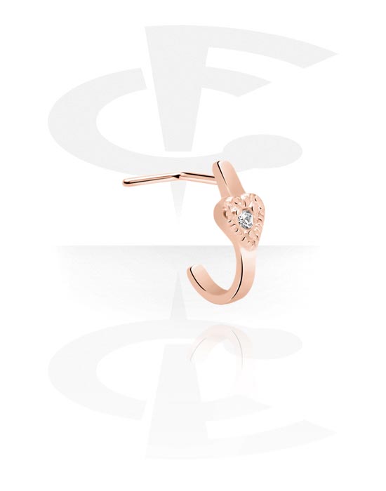 Haczyk do nosa (stal chirurgiczna, różowe złoto, błyszczące wykończenie) z nakrętką sercem i z kryształem