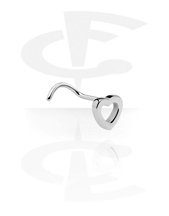 Zakrzywiony sztyft do nosa (stal chirurgiczna, srebro, błyszczące wykończenie) z nakrętką sercem